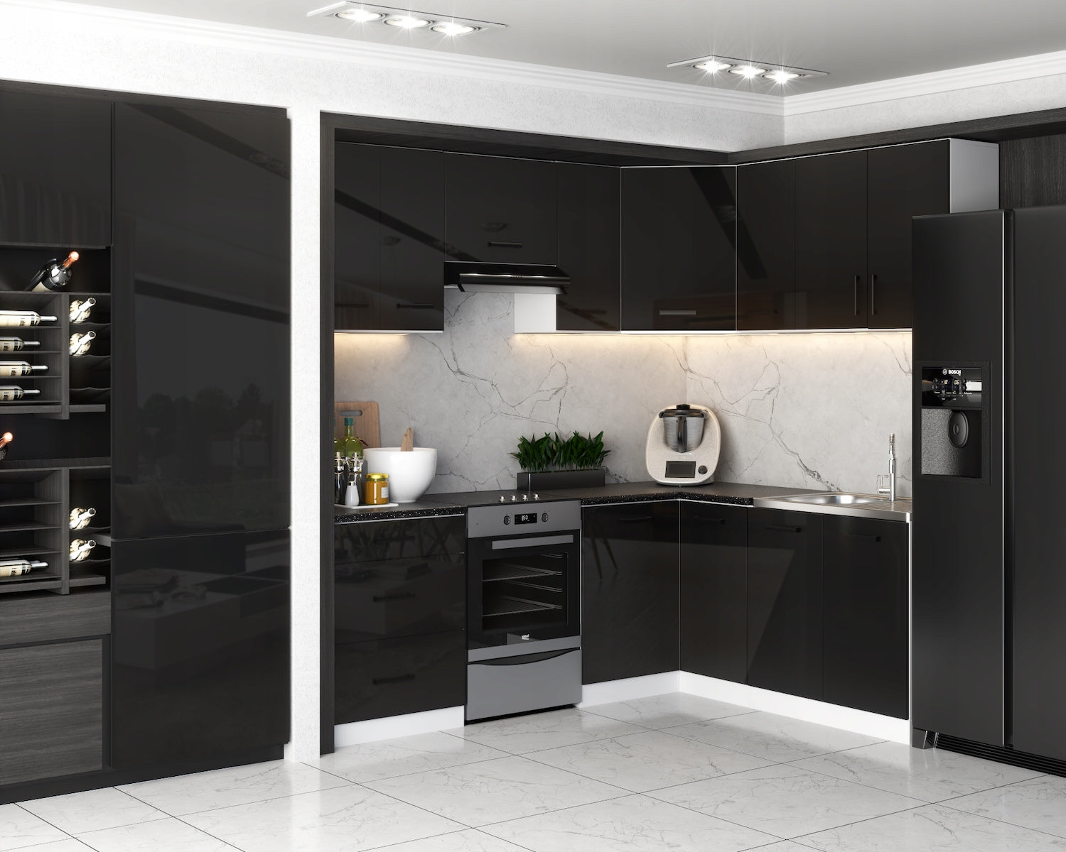 Als Experte in der Küchenindustrie bieten wir Ihnen eine günstige L-förmige Küche in schwarzem Hochglanz mit den Maßen 210x170 cm. Diese Küche ist funktional und modern gestaltet und wird Ihnen die perfekte Arbeits- und Aufbewahrungslösung bieten. Sie erhalten Qualität und Stil zu einem unschlagbaren Preis.