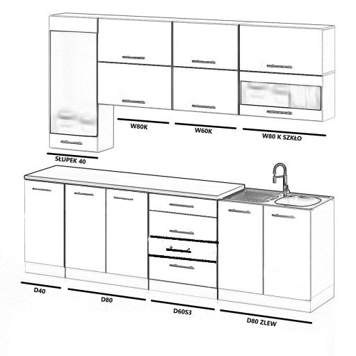 Küchenzeile 260 cm hochglanz modern